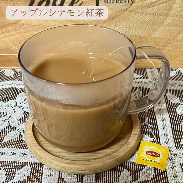 甘いミルクティーの中にりんごとシナモンがふんわりと香って、最初からこういう商品だったかもってくらい相性はばっちりです。